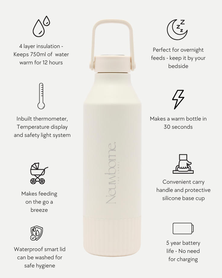 As parents, we know the struggle of 3am feeds, warming bottles on the go, and worrying whether your baby’s bottle is too hot or too cold. Those moments can feel overwhelming when you’re exhausted and just trying your best - and that’s exactly why we created the Neuwborne Bottle, to give you peace of mind when you need it most.