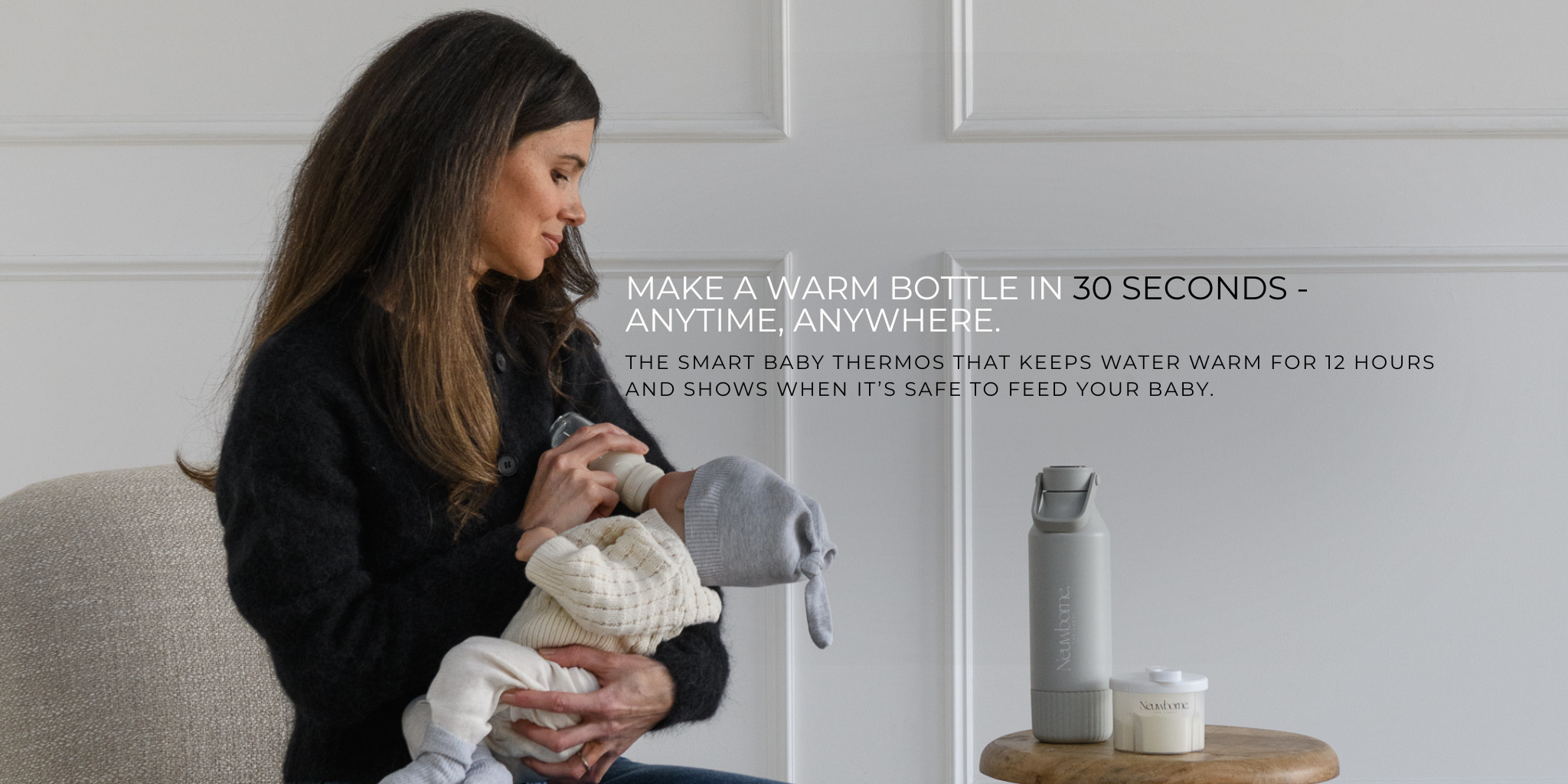 The Neuwborne Bottle is the first and only baby thermos worldwide to combine a temperature display, safety-light system, 4-layer insulation, a carry handle, and a silent, protective base. A level of safety and innovation you won’t find anywhere else.