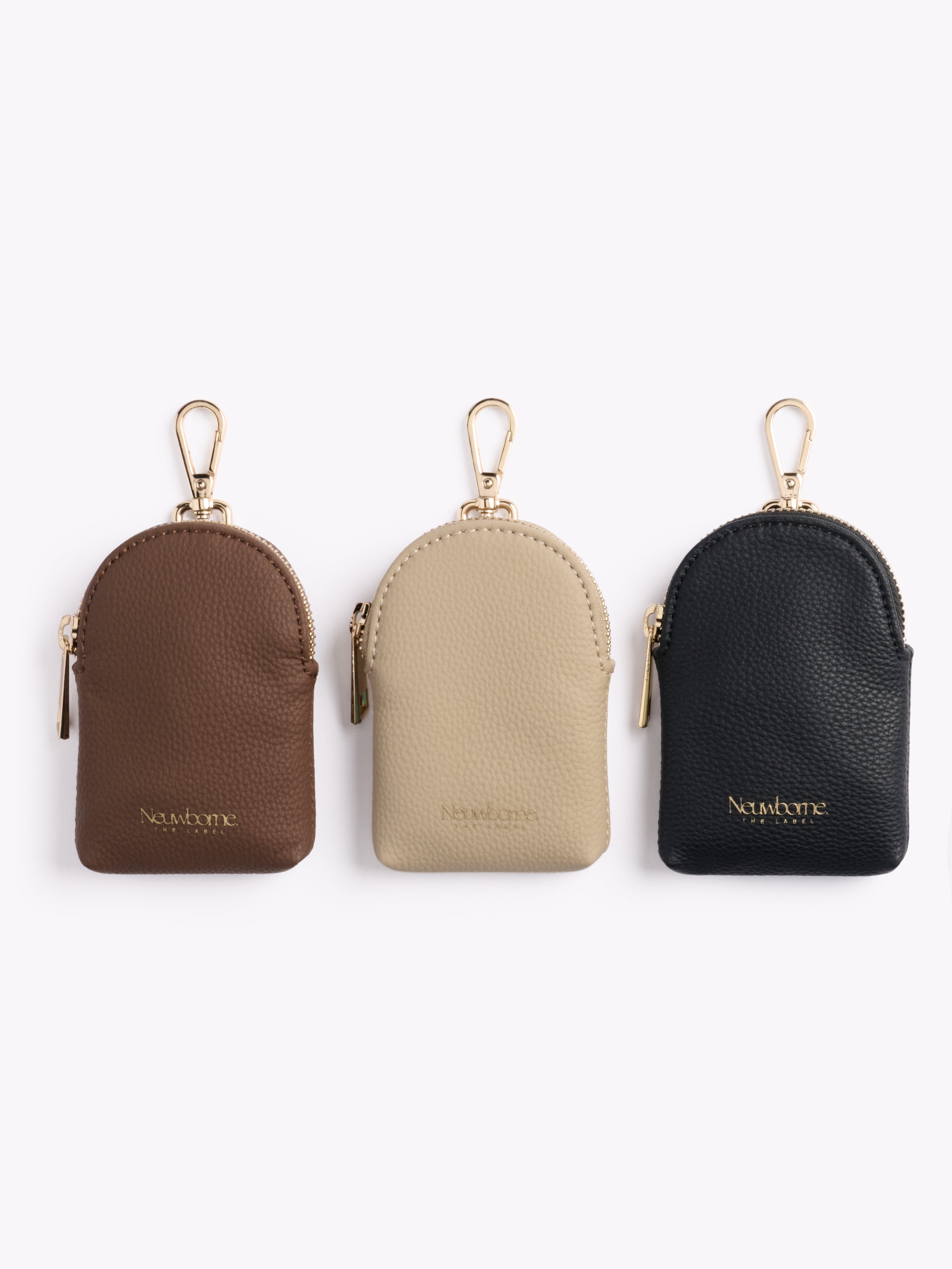 Made from premium pebbled vegan leather and featuring a water-resistant lining, this sleek pouch comfortably fits two dummy's and keeps your essentials secure and accessible, wherever you go.
